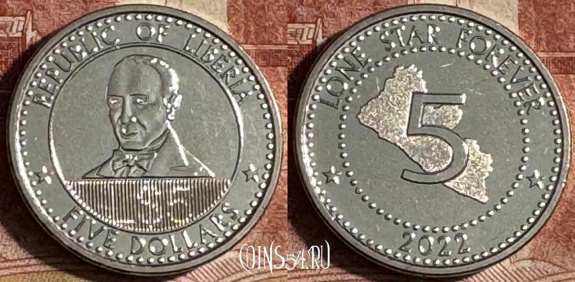 Аверс: FIVE DOLLARS L$5 REPUBLIC OF LIBERIA