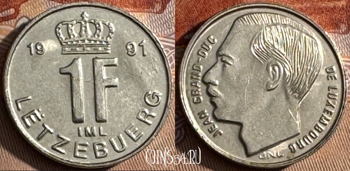 Люксембург 1 франк 1991 года, KM# 63, 439s-130