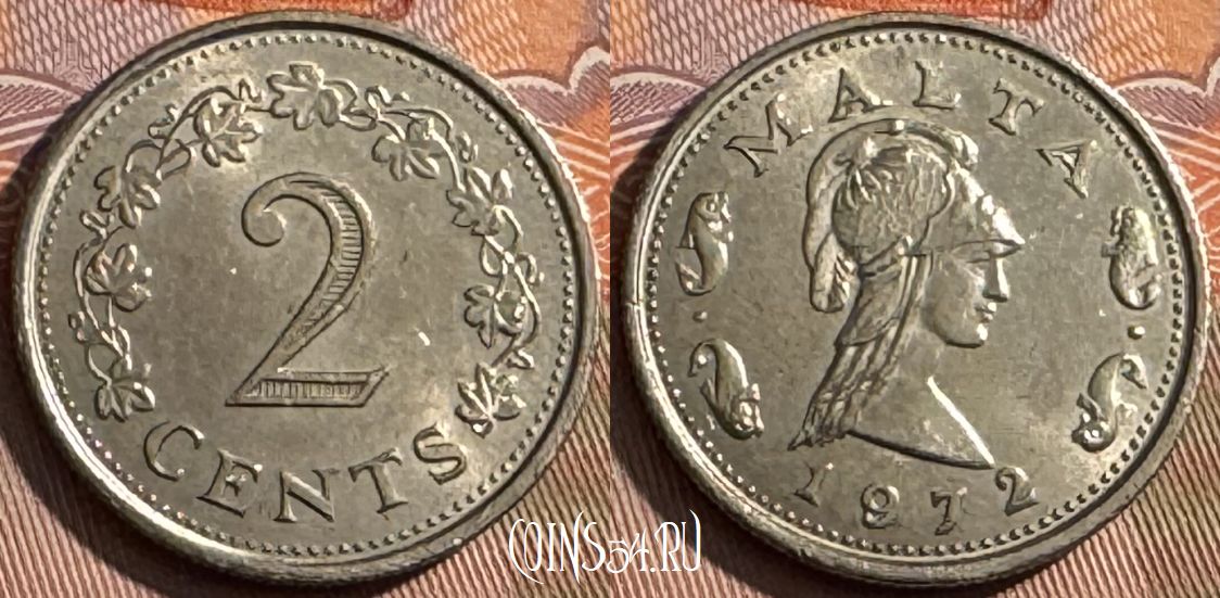 Мальта 2 цента 1972 года, KM# 9, 120t-048