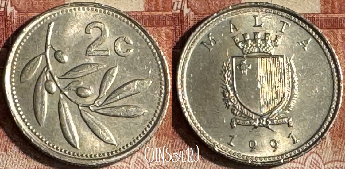 Мальта 2 цента 1991 года, KM# 94, 186t-061