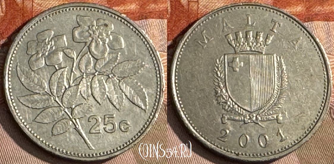 Мальта 25 центов 2001 года, KM# 97, 203t-109