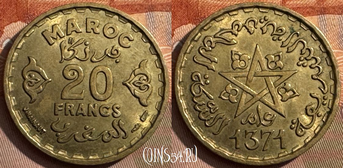 Марокко 20 франков 1952 года (1371), Y# 50, 389s-087