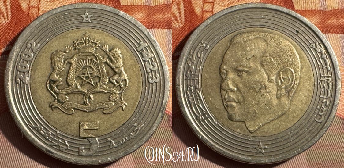 Марокко 5 дирхамов 2002 года (1423), Y# 109, 369s-079
