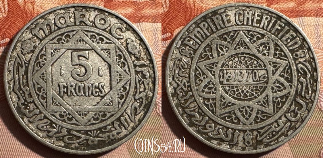 Марокко 5 франков 1951 года (1370), Y# 48, 400s-066