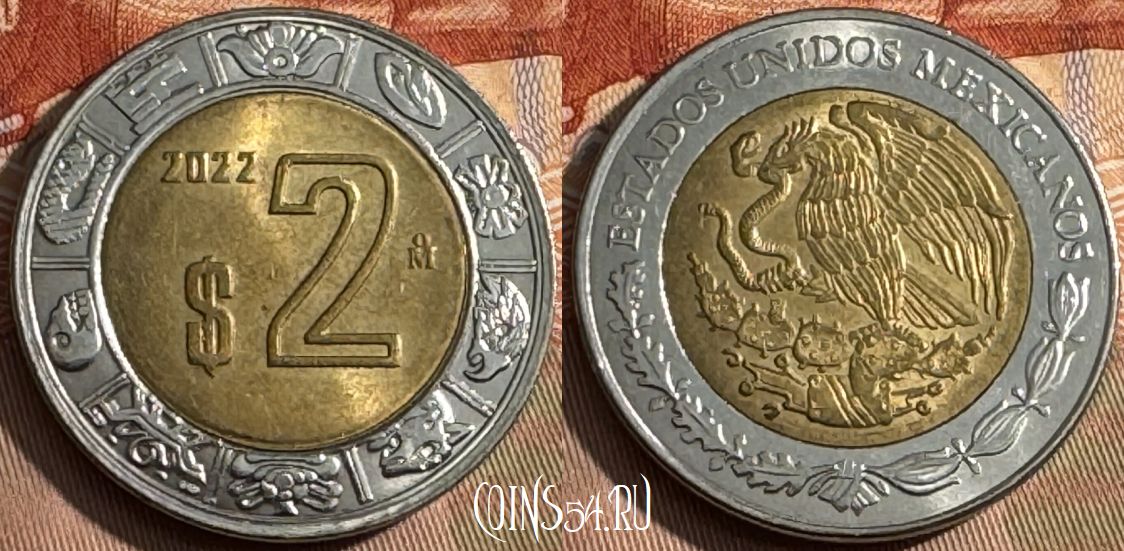 Мексика 2 песо 2022 года, KM# 604, 424s-130