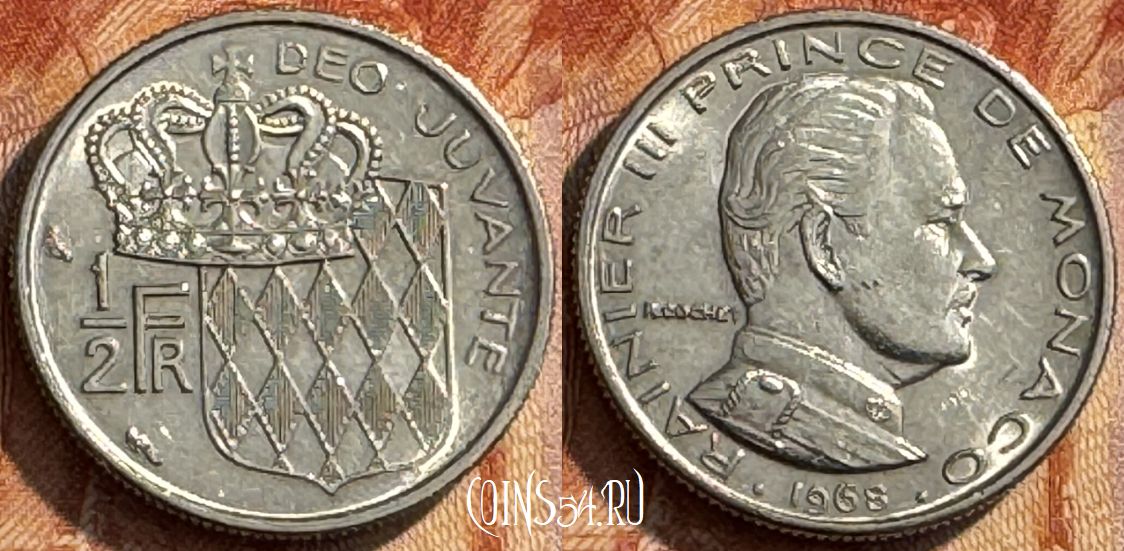 Монако 1/2 франка 1968 года, KM# 145, 278s-029