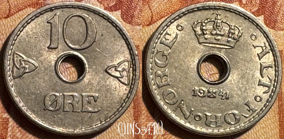 Норвегия 10 эре 1941 года, KM# 383, 502s-044