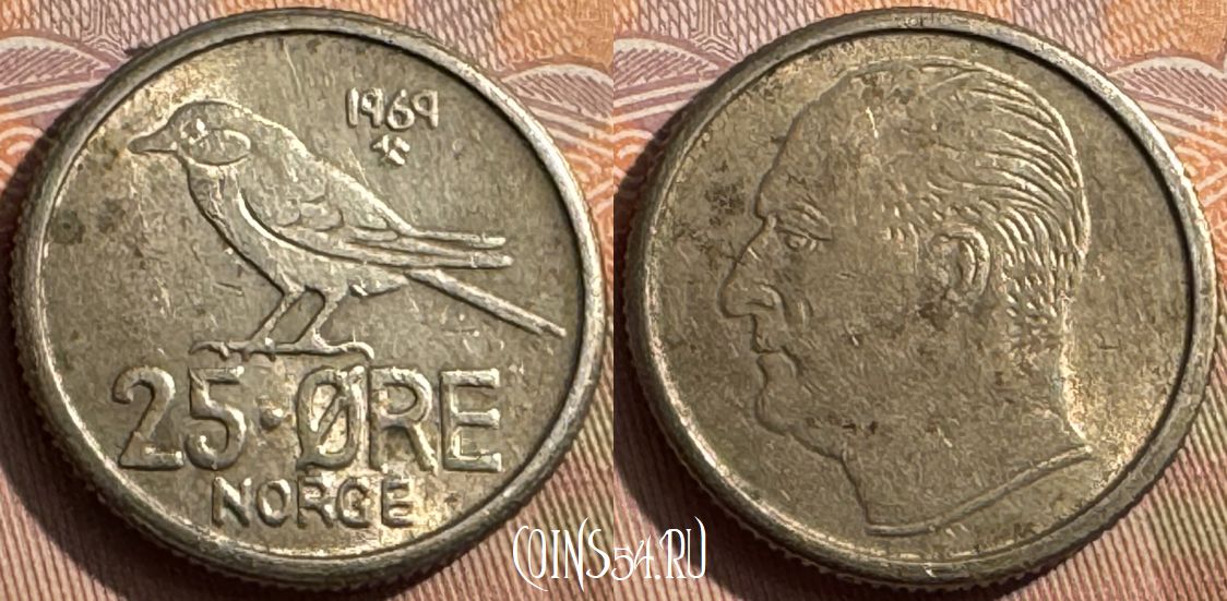 Норвегия 25 эре 1969 года, KM# 407, 386s-060
