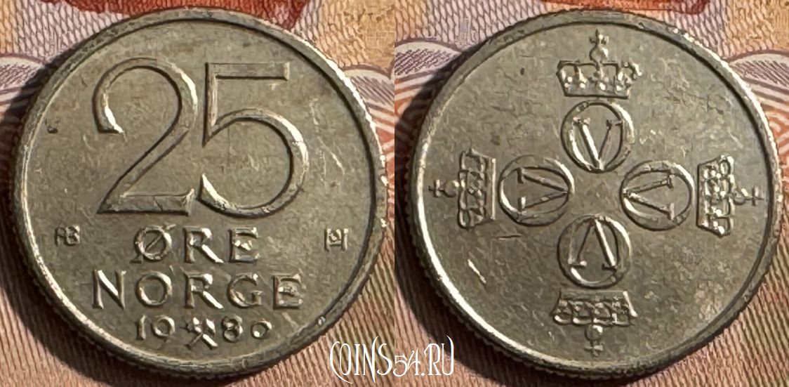 Норвегия 25 эре 1980 года, KM# 417, 425s-116