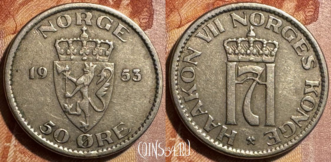 Норвегия 50 эре 1953 года, KM# 402, 502s-032