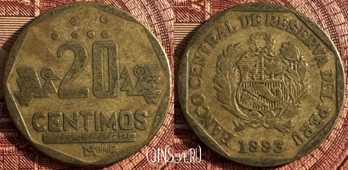 Перу 20 сентимо 1993 года, KM# 306, 368s-140