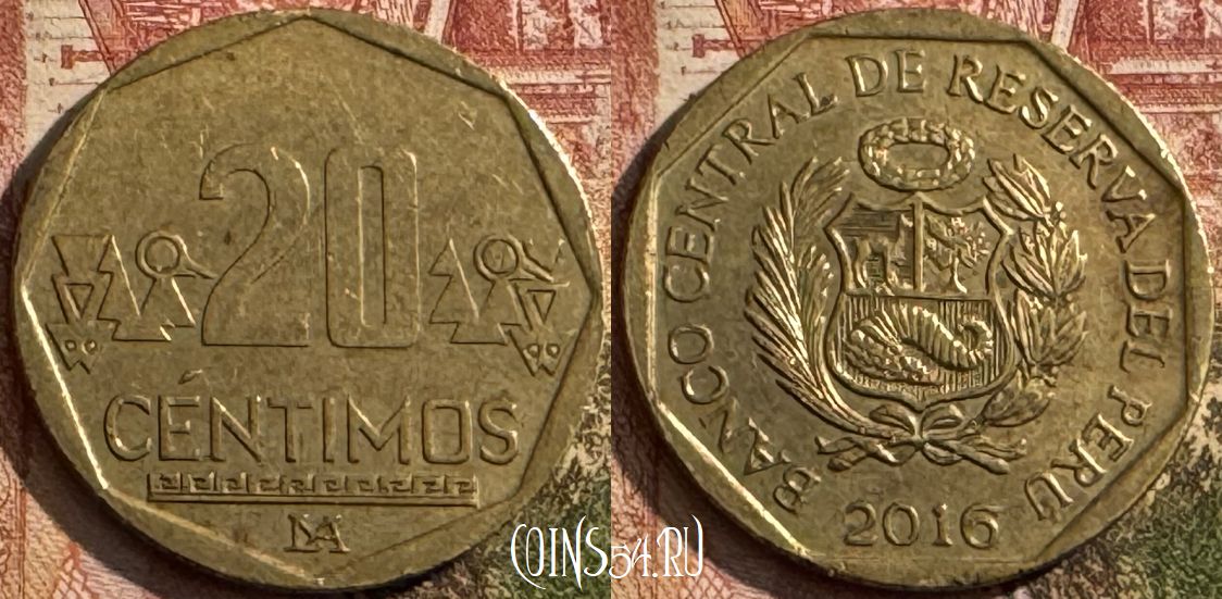 Перу 20 сентимо 2016 года, KM# 306.4, 157t-042