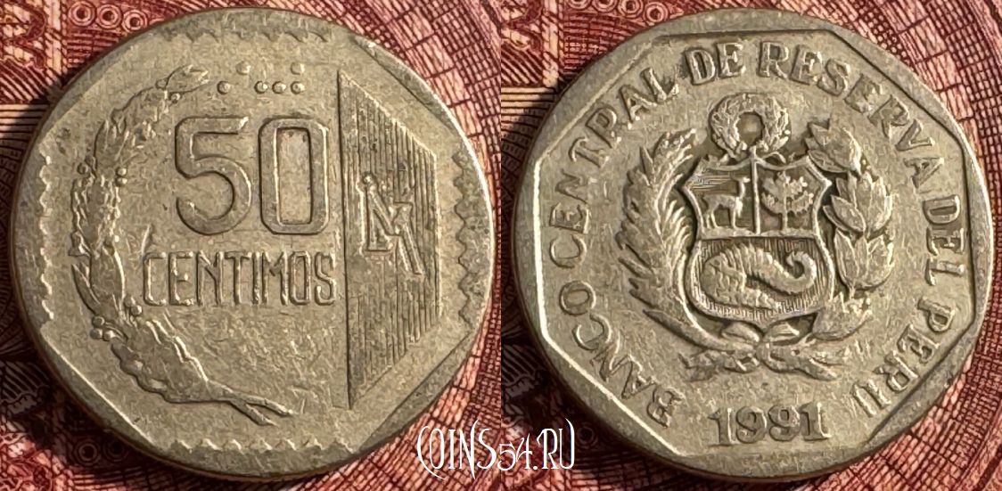 Перу 50 сентимо 1991 года, KM# 307, 365s-126