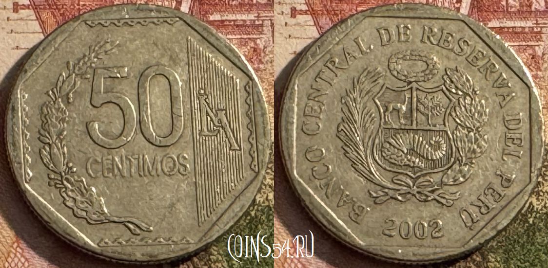 Перу 50 сентимо 2002 года, KM# 307.4, 148t-037