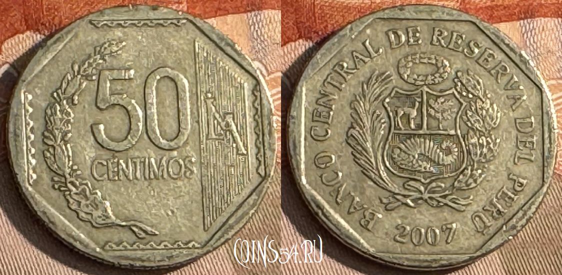 Перу 50 сентимо 2007 года, KM# 307.4, 215t-119