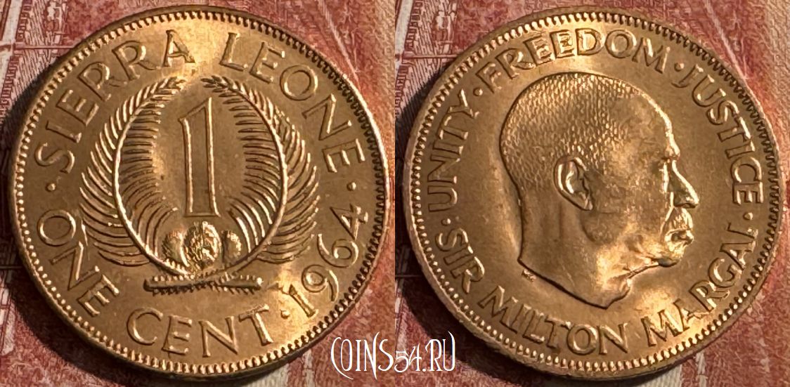 Сьерра-Леоне 1 цент 1964 года, KM# 17, 506s-006