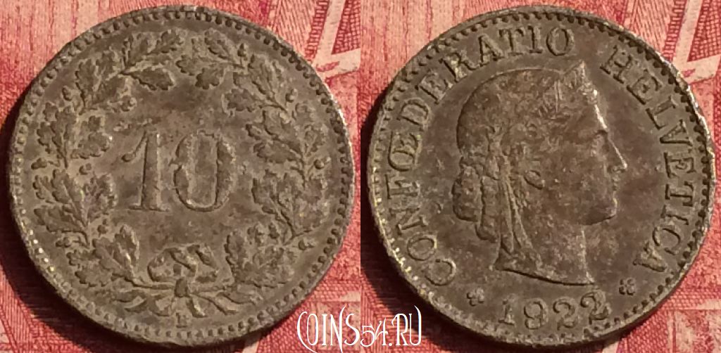 Швейцария 10 раппенов 1922 года, KM# 27, 353o-028