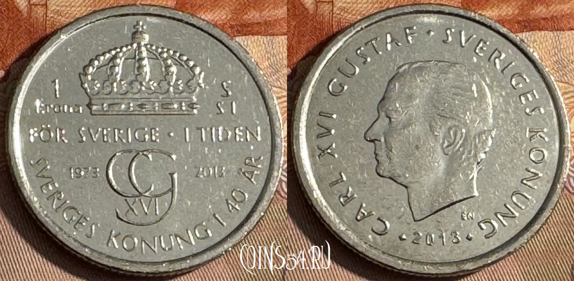 Реверс 1973 / 1 KRONA / 2013 / 40 ÅR / CG XVI / FÖR SVERIGE I TIDEN / SVERIGES KONUNG