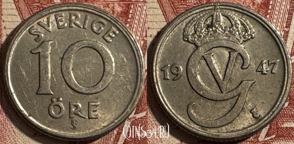 Швеция 10 эре 1947 года, KM# 795, 505s-006