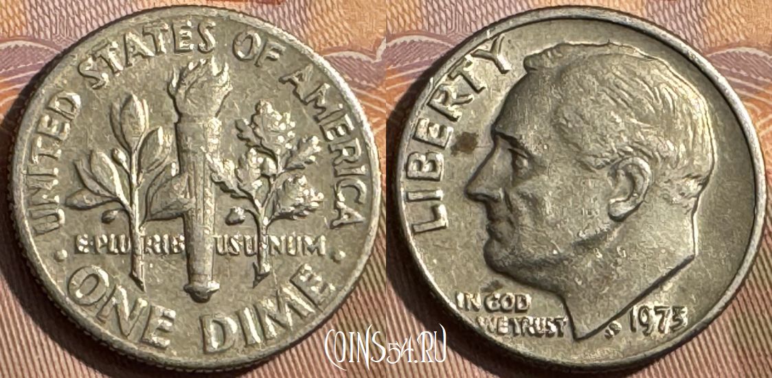 США 1 дайм 1973 года, KM# 195a, 373s-096
