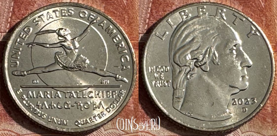 Реверс E PLURIBUS UNUM MARIA TALLCHIEF QUARTER DOLLAR UNITED STATES OF AMERICA