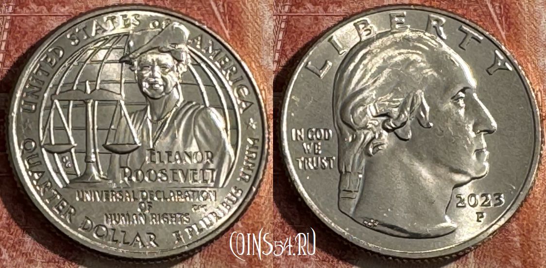 Реверс ELEANOR ROOSEVELT E PLURIBUS UNUM QUARTER DOLLAR UNITED STATES OF AMERICA UNIVERSAL DECLARATION OF HUMAN RIGHTS