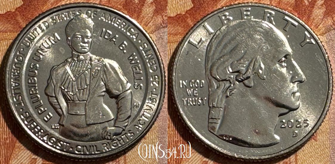 Реверс 25 CENTS CIVIL RIGHTS ACTIVIST EH E PLURIBUS UNUM IDA B. WELLS JOURNALIST PH SUFFRAGIST UNITED STATES OF AMERICA