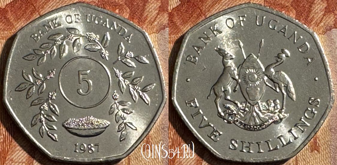Уганда 5 шиллингов 1987 года, KM# 29, 503s-088