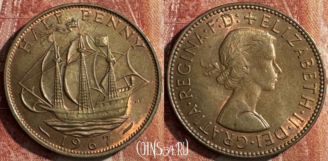 Великобритания 1/2 пенни 1967 года, KM# 896, 444s-092