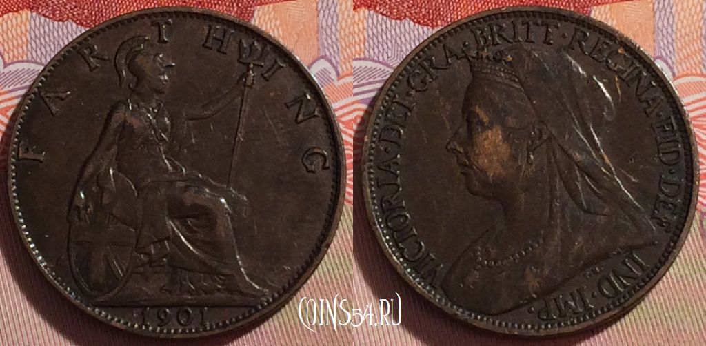 Великобритания 1 фартинг 1901 года, KM# 788, 271-066