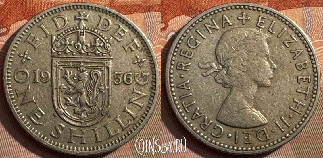 Великобритания 1 шиллинг 1956 года, KM# 905, 389s-090