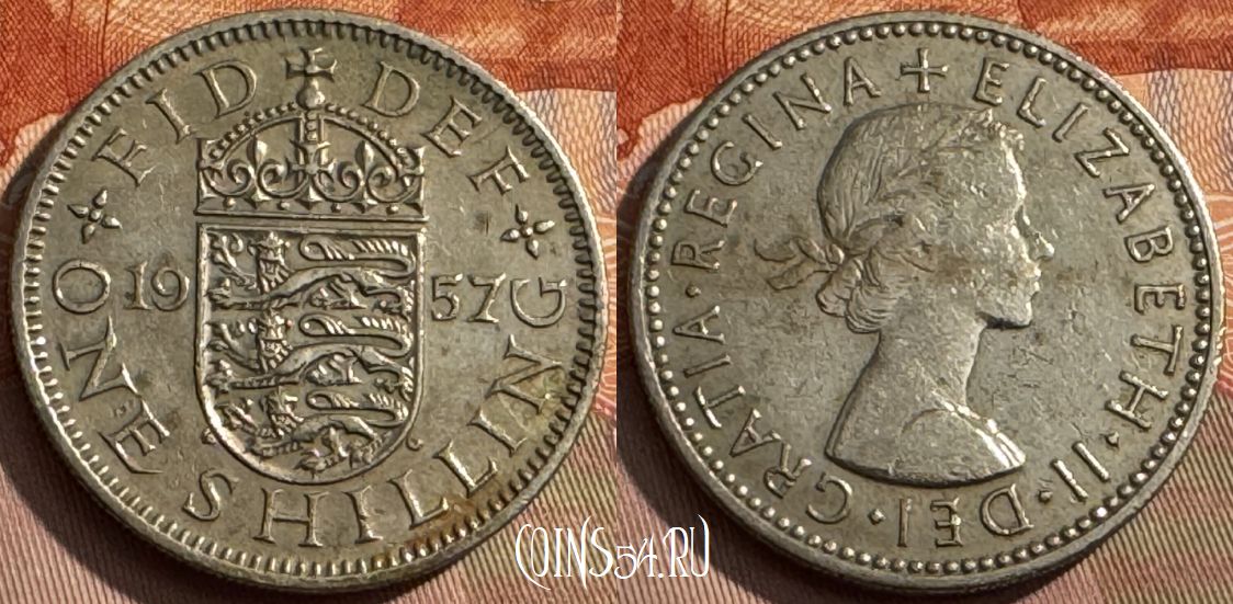 Великобритания 1 шиллинг 1957 года, KM# 904, 383s-107