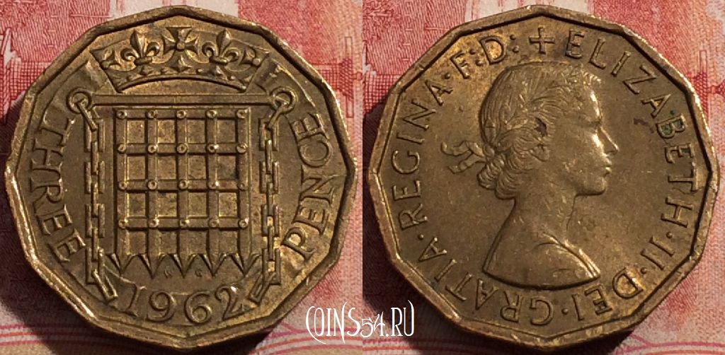 Великобритания 3 пенса 1962 года, KM# 900, 211-023