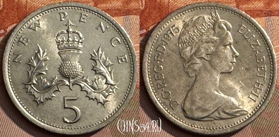 Великобритания 5 новых пенсов 1975 года, KM# 911, 389s-061