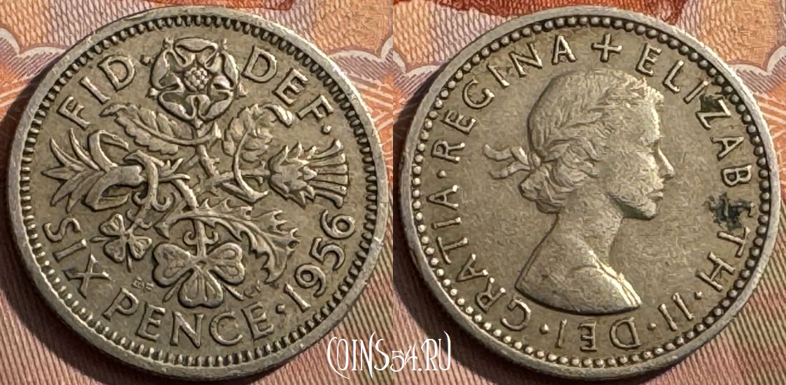 Великобритания 6 пенсов 1956 года, KM# 903, 394s-011