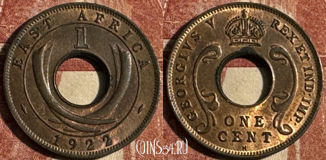 Британская Восточная Африка 1 цент 1922 года, KM# 22, 501s-038