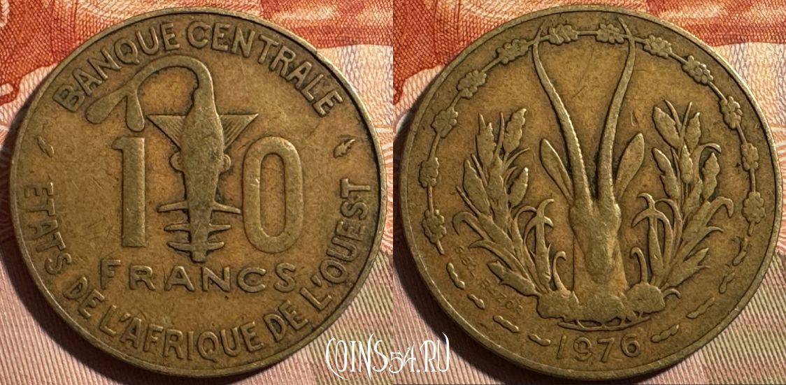 Западная Африка 10 франков 1976 года, KM# 1a, 397s-089