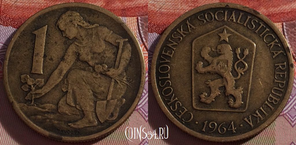 Монета Чехословакия 1 крона 1964 года, KM# 50, 270-060