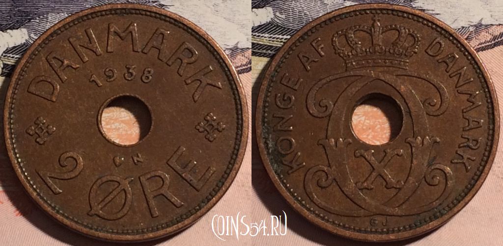 Дания 2 эре 1938 года, KM# 827, a103-007