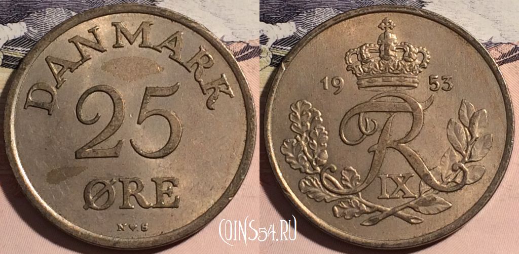 Дания 25 эре 1953 года, KM# 842, a104-141
