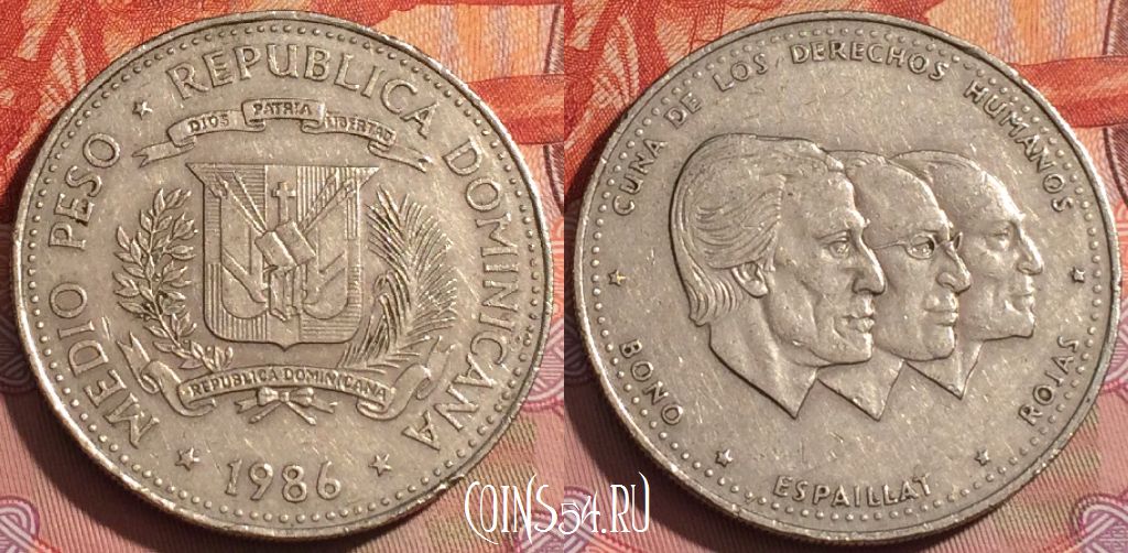 Доминикана 1/2 песо 1986 года, KM# 62, 242a-032