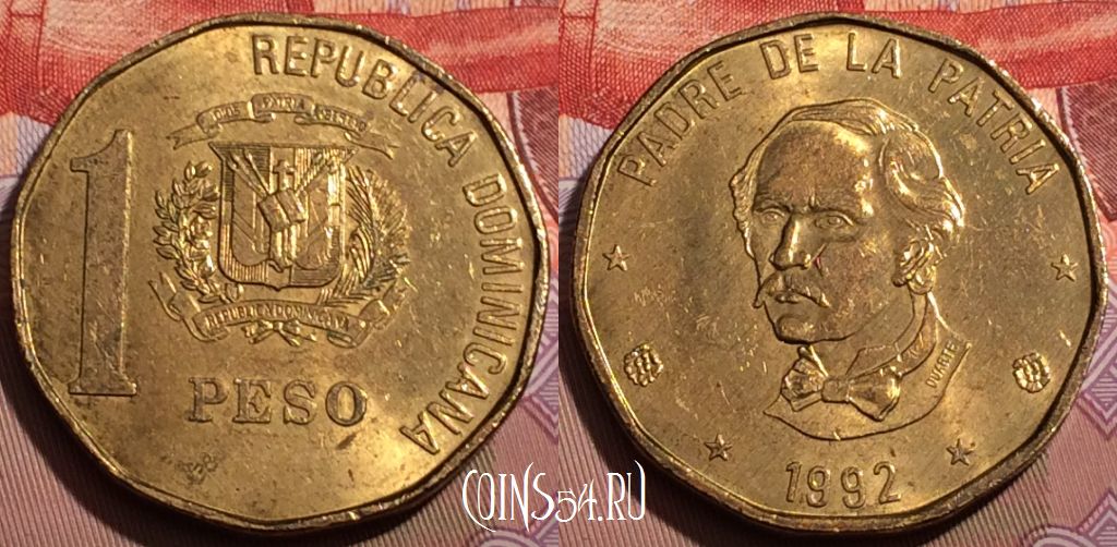 Доминикана 1 песо 1992 года, KM# 80.2, 240b-126