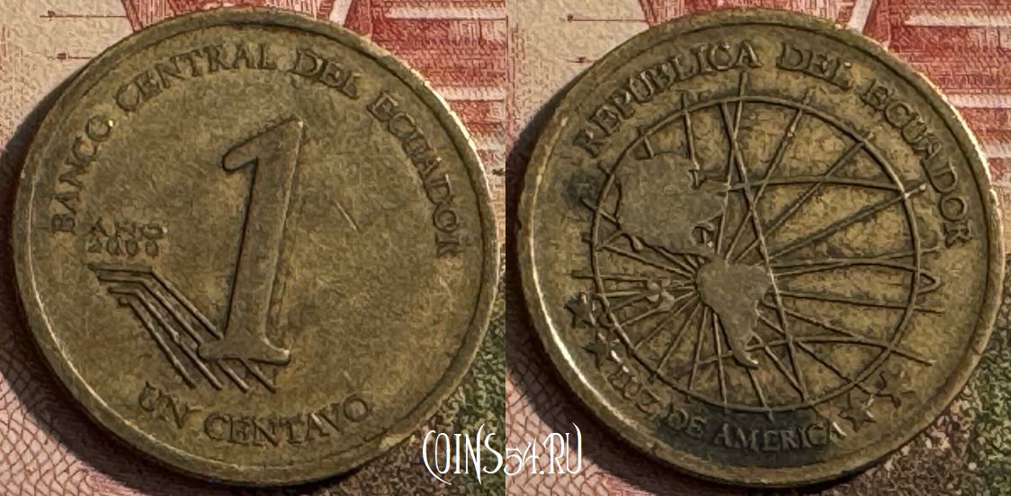 Эквадор 1 сентаво 2000 года, KM# 104, 218s-055