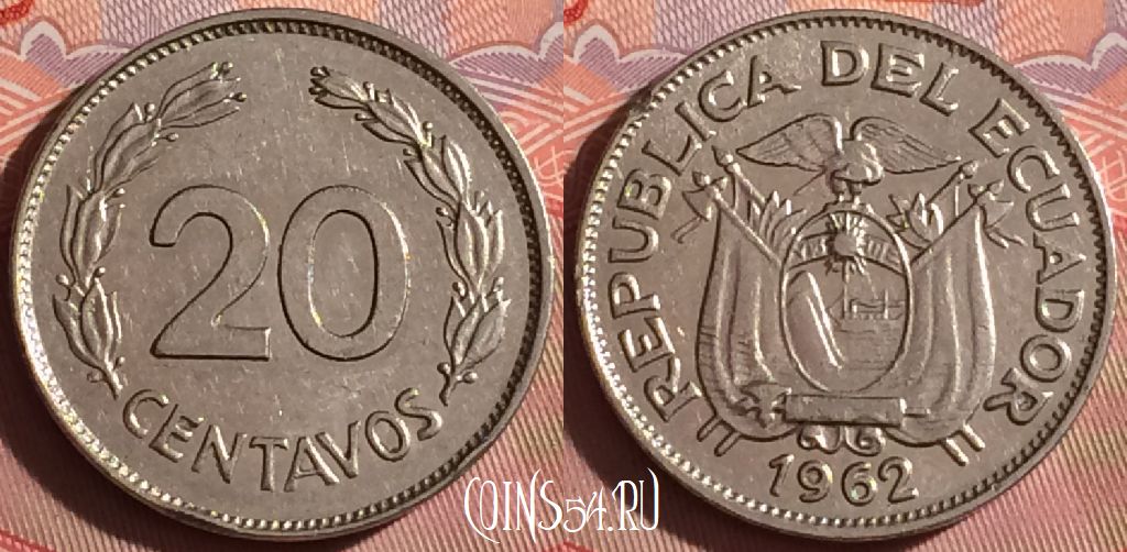 Эквадор 20 сентаво 1962 года, KM# 77.1c, 238f-021