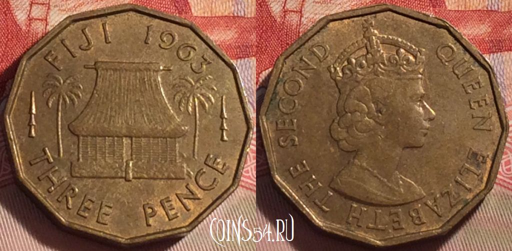 Фиджи 3 пенса 1963 года, KM# 22, 268-045