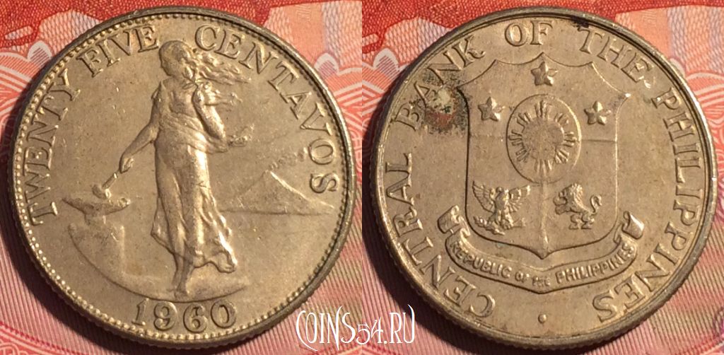 Филиппины 25 сентаво 1960 года, KM# 189, 226a-130