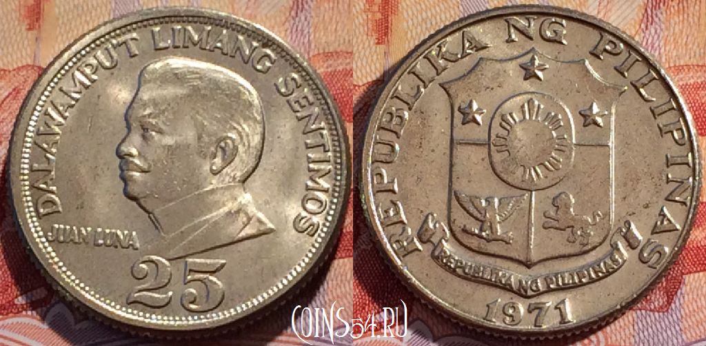 Филиппины 25 сентимо 1971 года, KM# 199, 085b-054