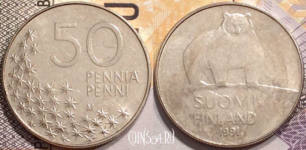 Финляндия 50 пенни 1991 года, KM# 66, 138-078