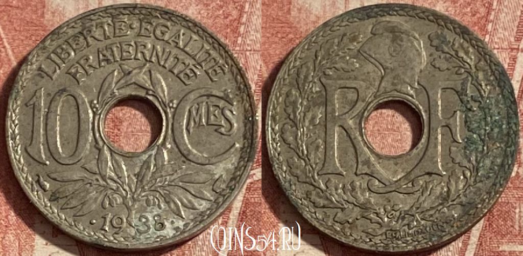 Франция 10 сантимов 1938 года, KM# 889, 290p-072