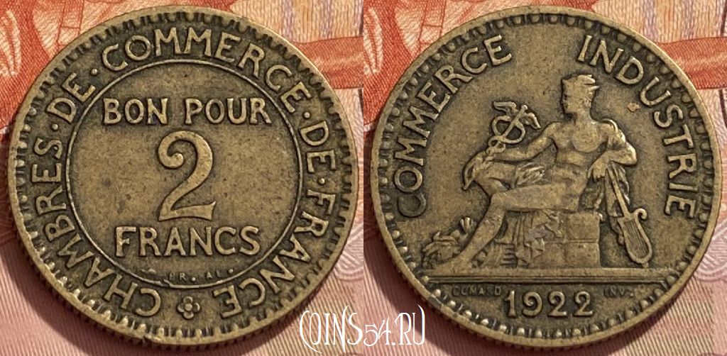 Франция 2 франка 1922 года, KM# 877, 349q-080